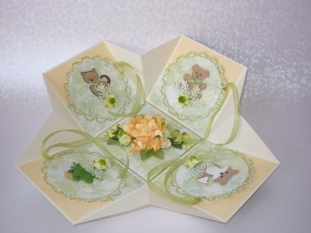 Dėžutė papuošta daugelio vaikystėje mylėtais pasakų personažais ar tiesiog šiaip mielais gyvūnėliais - tai gudrusis lapinukas, meškutis repečkutis, varliukas-princas ir švelnusis katinėlis:
